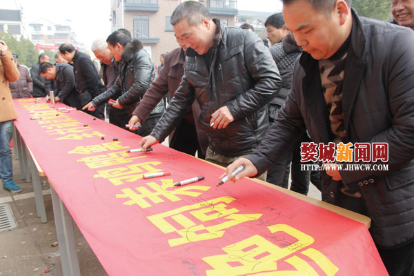 2月15日上午,白龙桥镇叶店村104位村民代表、党员集体签名承诺“杜绝饲养鸡鸭禽、全村动员预防禽流感”,并分头发放倡议书,进行全村总动员。党员叶樟友、村民楼美珍带头宰杀了自家养的活鸡,表示为了全村人民的健康和村庄环境,会说服亲朋好友响应号召,尽快处置活禽。