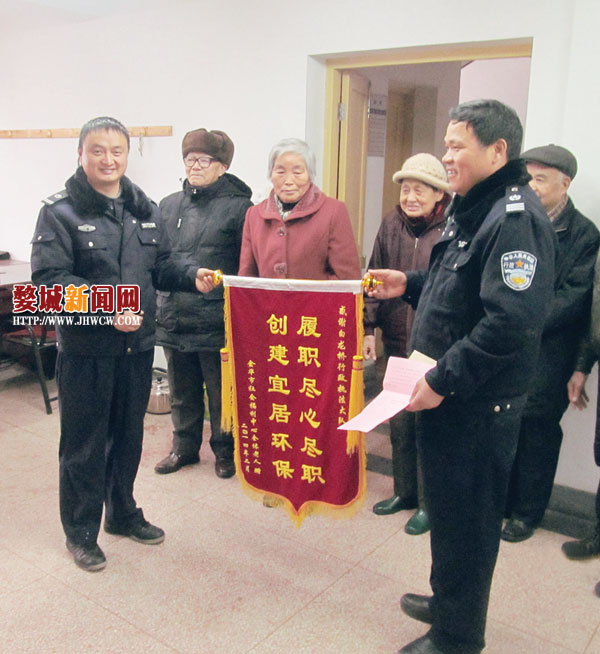 2月25日,金华市社会福利中心为白龙桥行政执法大队送来了一面题有“履职尽心尽责创建宜居环境”的锦旗。原来,该大队前不久彻底清理了市社会福利中心大门口的垃圾池,并树立了警示牌,让该中心的老人们过上了一个干净、整洁、祥和的春节。