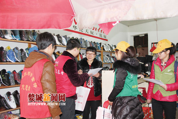 “阿姨,您好,我们是环保志愿者,麻烦您做一个调查问卷。今年以来,全省上下开展了声势浩大的‘五水共治’行动,全力整治水环境。在婺城,党委、政府也下了很大的力气整治白沙溪,请问‘通过整治,白沙溪水环境是否得到有效改善,今后如何让白沙溪水更清澈?’”3月1日上午,在白龙桥集镇工业街上,来自金华交通技师学院的庄启敏等五位学生志愿者,走进一家沿街商铺,围住经营户沈晓蓉发问。