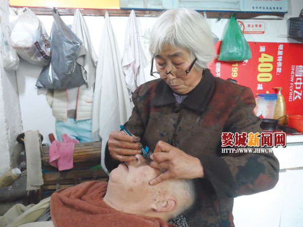 “来这里的客人,平时每天20人左右,春节等重大节日前多一些,有时会超过40人,忙得没时间吃饭。”王菊芬说。记者发现,来这里理发的顾客,基本都已两鬓染霜,甚至很多已满头白发。一打听才知道,这里的老顾客年纪最大已经86岁。这些人来自四面八方,有骆家塘、秋滨等城郊的,也有罗店、雅畈、含香、罗埠等乡下的。“因为老客多、老人多,我这里简直成了一间小型‘老年俱乐部’,他们不仅来理发,更喜欢待在这里聊天。”王菊芬说。据她回忆,跟着她年头最久的客人是她在时春茶馆摆剃头摊的第一批客人,至今已有三十多个年头。