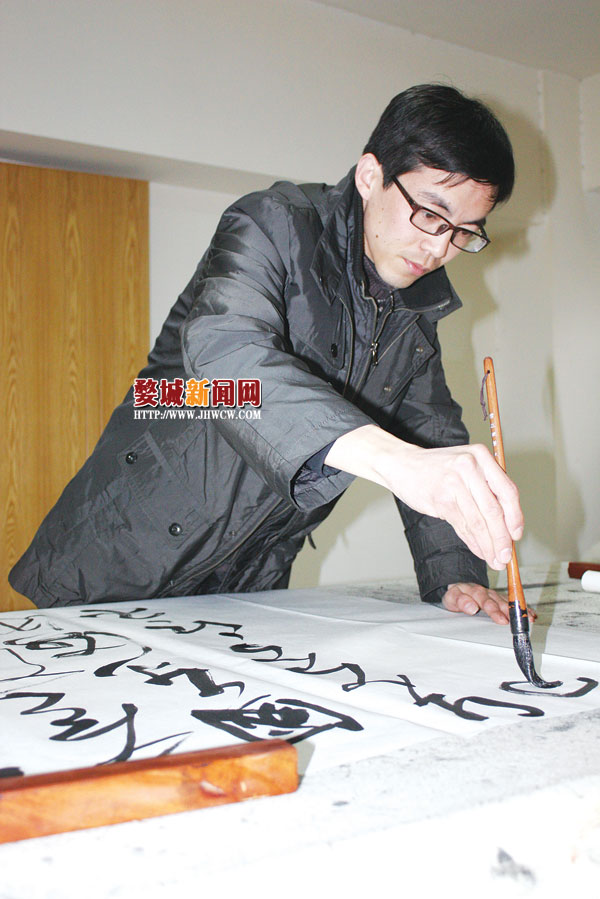 每星期两节书法课,他向来不会落下。“自幼喜爱中国书画,只是当时处在80年代末90年代初,又是农村学校,语数老师都缺,根本别提书画老师了。”章国新说,“直到进了金华师范,终于有了专业的书法老师,自然潜心其中。”从18年后的今天看来,就书法内容而言,那时学习的内容极少,几乎可以忽略。然而若是从个人书法的历程上来讲那段时间正是播种时节。