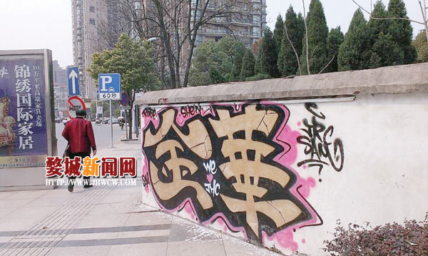 路边围墙上,最令人反感、也最让管理者头疼的应该是层出不穷的“牛皮癣”。城北街道祝丰亭社区工作人员告诉记者,辖区回溪街铁路桥南侧的一堵围墙就是如此——刷白了不出三天,肯定被“牛皮癣”占领;无奈只能再刷……反反复复。这一次,出现了新的变化。“墙刷白的第二天,我发现它被‘涂鸦’占领了。‘金华’两个字中间隐藏着‘I love’(我爱)字样,组成‘我爱金华’。我觉得,相比‘牛皮癣’,这堵围墙能被有文化韵味的‘涂鸦’占领,值得高兴。”祝丰亭社区主任施巧妙说。