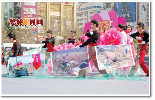 在“山花烂漫·美丽婺城”系列活动暨茶花节启动仪式结束后,一场精彩的文艺表演随即登台。今年,竹马乡选送了5个节目参加文艺表演,表演内容包括了金华山歌、舞蹈、古筝和剪纸等。而让观众们眼前一亮的是,不管是金华山歌,还是舞蹈表演,竹马乡的百姓都通过节目表达了乡党委、政府推进“五水共治”、环境卫生整治的决心,以及全乡百姓要积极参与“五水共治”、环境卫生整治,共同建设美好家园的心愿。