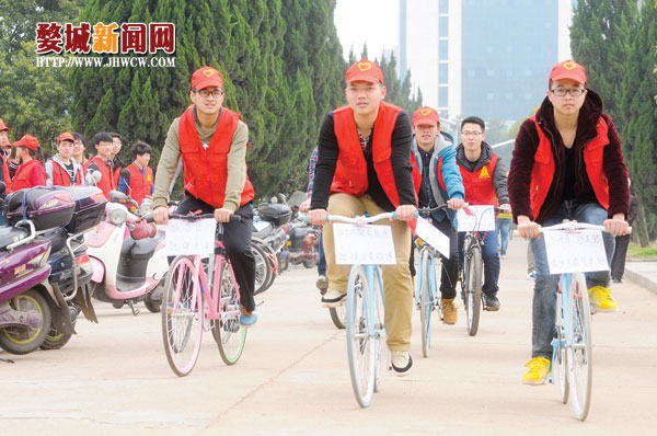 ▲近日,金职院建工青大队组织40余名志愿者来到市区樱花公园一带开展义务护绿行动,除了修剪枝杈、浇水护芽、清理绿化带外,志愿者们还通过绿色骑行的方式向市民宣传“护绿、爱绿、兴绿”的文明意识。