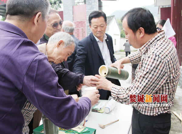 “闻一闻,香!品一品,更香!”“我们搞旅游这么多年,还第一次看到和喝到这种竹筒酒,不错!有想法,有前景!”日前,沙畈农民华建军把他研制出来的竹筒酒带到了婺城旅游推介会上,吸引了众多上海旅游界老总们的亲睐,现场还达成了合作意向。据介绍,“天下竹酒”经过3年的活化,酒中的甲醇、重金属等有害物质被生长中的竹体分解排放,而竹中对人体有益的黄铜、鲜竹沥、多种氨基酸、微量元素等融合于酒中,从而造就了这绿色、生态、健康的活竹酒。