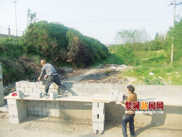 昨日,记者在联合社区寺院自然村和麻车自然村交界的两条铁路中间看到,几位工人正在忙碌地砌墙,墙外是一片荒地。社区委员会成员、护村队长方小平告诉记者:“最近几年,这里因为位置偏僻,成了不少投机取巧者倾倒垃圾的场所。我们组织了护村队巡逻,可抓不胜抓、防不胜防。无奈之下,我们通过社区会议讨论,决定在这里建起防护墙,阻止那些外来垃圾‘偷渡’进来。”