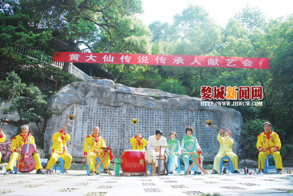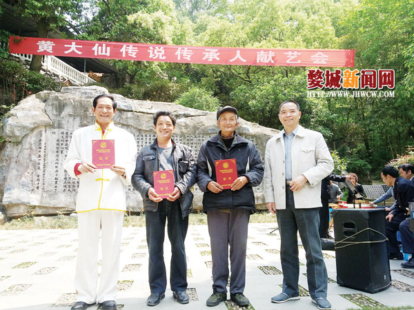 五一劳动节期间,金华双龙风景旅游区管理委员会黄大仙文化研究会作为保护单位,在尊重黄大仙文化内涵和原真性的基础上,金华黄大仙文化研究会积极探索多种文化表现形式,特别融入了金华人民喜爱的国家级非物质文化遗产婺剧形式,对黄大仙文化进行保护、传承、推广、展示,并且组织了一台以山歌、讲故事、道情、婺剧表演唱等多种形式的《黄大仙传说献艺会》比赛,每天安排在双龙风景区叶圣陶碑文广场进行演出,既给等待进双龙洞排长队的游客带来观赏,又宣传、弘扬了黄大仙文化,出游双龙的游客们都不由地交口称赞:“有料!”