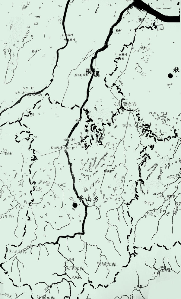 桐溪,又名洞溪,发源于长山、安地、沙畈三个乡镇边界上的大坪尖(海拔674米),北流经桃园口、思村,左纳源出毛栗坪之杨里水。折东流至桐溪村,右有源自黄岭脚水注入。转北流,过东屏,转西北流,至长山,左有源出麻车坞入古塘水库(小〈二〉型)之水,经石道畈注入。左有白沙溪第二堰引金兰水库之水汇入。东通清塘水库。自长山转北流,经邵村至龙蟠,穿塔水桥,于下塘入金华江。
