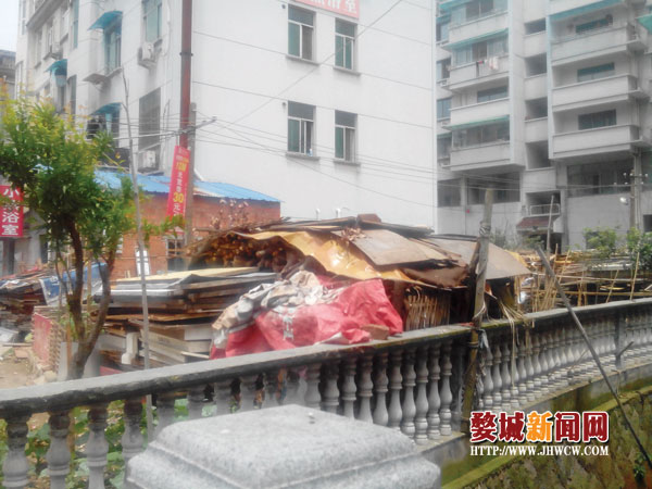此外,五一社区作为村改居的社区,一些居民们依然保持着农民本色。他们将溪边空地处开垦成菜园子,又随意堆放杂物、废弃物,增加了沿溪整体环境的脏乱程度。比如,位于溪边的小燕浴室,充分“利用”了浴室与溪流间的空地,堆起了如山的木材以及木制品废弃物……
