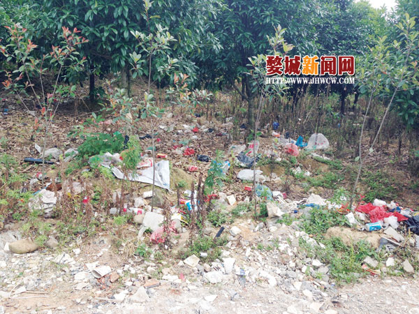 沿着白沙溪往上游走,记者来到了白沙溪古方段。抬头望去,河道两岸绿树成荫,但低头一看,树林里泡沫盒、方便面桶、塑料袋、饮料瓶等垃圾散落一地,有一些垃圾因为长久没有得到清理已经开始腐烂,散发着阵阵恶臭。“一旦雨下得大了这些垃圾就会被冲进河道,对河水造成较大污染。”一位过路的村民告诉记者。另外,在古方桥下游200米处也堆着不少生活垃圾和建筑垃圾。