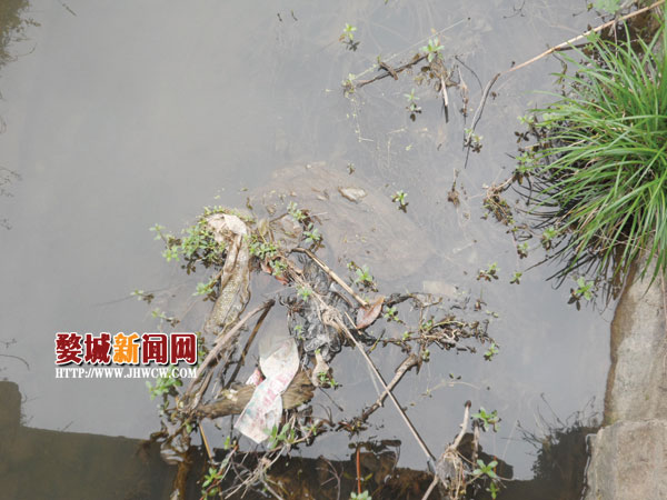 记者沿溪而上,在上干口村大坝泄洪口位置,发现该村的几名村干部正冒雨清理河中枯枝、落叶、杂草等漂浮物,但水面看上去还是略显浑浊。该村其中一名村干部告诉记者,少数村民环保意识不强,会将一些农药瓶、农药袋、塑料袋等直接丢弃河中,另外也不排除外界因素,下雨天时雨水会将一些枯枝落叶冲入溪中。