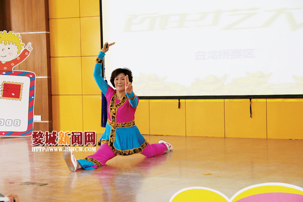 同住华电新村社区的居民张珍武更是巾帼不让须眉,带来独舞,惊艳全场。虽然已有58岁,但张珍武右手舞剑显得英姿飒爽,最后以“一”字劈叉结尾更是获得观众雷鸣般的掌声。“每天早上6:30就和队友们一起练剑了,风雨无阻,不仅身体更健康了,也获得了很多的荣誉。”张珍武说,大家有共同的兴趣爱好,组成了十二局舞剑队,还到香港、宁波等地比赛,多次获得金奖。