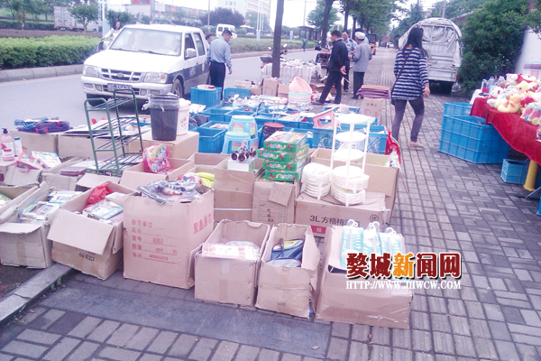 5月13日,婺城行政执法分局乾西中队的执法队员巡查时发现,环城西路人行道上有人设摊,买卖百货用品,占用道路面积约五六十平方米,几乎将整个人行道堵死,严重影响了道路通畅。对此,执法队员责令当事人立即清理现场,恢复道路通行并作了相应处罚。