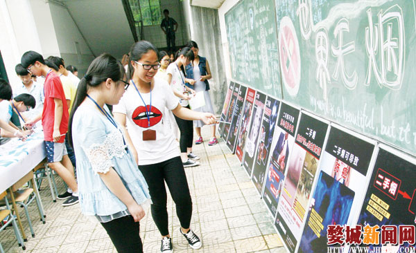 5月31日世界无烟日,为了贯彻无烟环境的理念,进一步推动青少年控烟工作,金华市疾控中心、婺城区疾控中心、罗店社区卫生服务中心组织人员来到金华市第一职业中学,向全体学生发出“拒吸第一支烟,做不吸烟新一代”的倡议;组织开展签名活动;展出“二手烟的危害”展板;发放“吸烟的危害性”健康教育处方,并在食堂、图书室等室内公共场所张贴了禁烟标志和控烟宣传画。