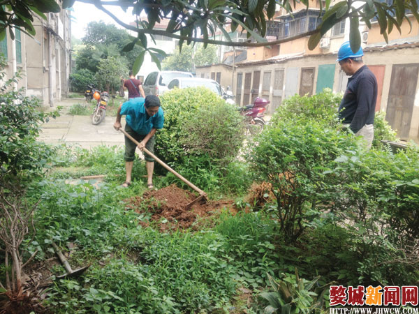 ▲昨日,城东街道旌孝街社区组织人员对辖区游园街东郊廉建房1幢的花坛进行绿化补种。
