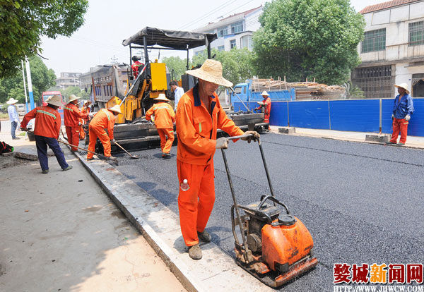 近日,记者在金兰中线婺城区乾西乡上陈村路段看到,正方交通建设有限公司施工人员正在南侧路面摊铺沥青。据了解,因金兰中线排水管道新建工程施工需要,靠近乾西乡上陈村路段今年2月下旬开挖路南侧500米路面,目前南侧道路下的排水管道铺设完成,半边路面摊铺沥青后先恢复通行,再进行另一半道路施工。记者宋佳骐摄