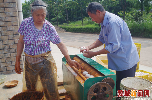 据机器主人老徐介绍,他家生产、销售咸鸭蛋已有十多年时间,洗鸭蛋是他们“每天都要干的活儿”。以前,老徐夫妇都靠手工清洗鸭蛋,天天累得腰酸背痛。“前年,我们买了洗蛋机器,一用就停不了了,省力不说,速度也快、洗得也干净。这不,前段时间,第一台洗蛋机坏了,我们一天也没耽搁,马上去买了现在用的这台。”老徐笑呵呵地说。