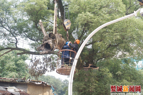 近日,安地镇组织人员并调动专业设备,对集镇上一棵百年古樟树的枯枝败叶修剪和清理,以保障夏季用电高峰的电力安全,同时使古树焕发其枝繁叶茂的旺盛生命力。
