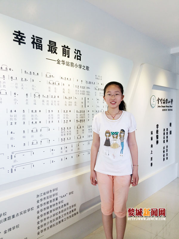 她叫丰璟,是站前小学六(二)班的学生。她曾经获得三好学生11次;2012年评为站前小学“站前之星”;第九届“中国小作家杯”现场作文大赛二等奖,第十一届、十三届、十五届“中国小作家杯”现场作文大赛一等奖;第九届、第十届、第十一届、第十二届走进“美妙的数学花园”解题金华市一等奖;2013年度婺城区十佳少先队员……就在不久前,她又荣获了2014年金华市“十佳”少先队员。她叫丰璟,是站前小学六(2)班的学生。她曾经获得三好学生11次;2012年评为站前小学“站前之星”;第九届“中国小作家杯”现场作文大赛二等奖,第十一届、十三届、十五届“中国小作家杯”现场作文大赛一等奖;第九届、第十届、第十一届、第十二届走进“美妙的数学花园”解题金华市一等奖;2013年度婺城区十佳少先队员……就在不久前,她又荣获了2014年金华市“十佳”少先队员。