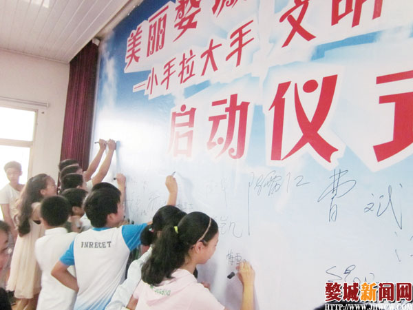 昨天上午,婺城区“美丽婺城,巾帼先行”——小手拉大手,文明行动启动仪式在竹马乡举行,本次活动由区妇联组织。