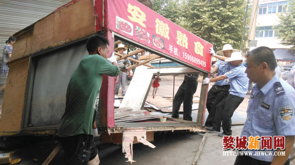 昨天上午,婺城区乾西乡党委政府与行政执法、交警、运管、工商等多部门联合行动,对辖区天师东路、工贸街、碧春路等部分路段的沿街商家私搭乱设、占道经营等违法现象展开集中整治。此次整治共拆除沿街未经审批的钢架棚、帆布遮雨棚52个、广告牌22块、暂扣占道灯箱28只、处理占道经营76起。
