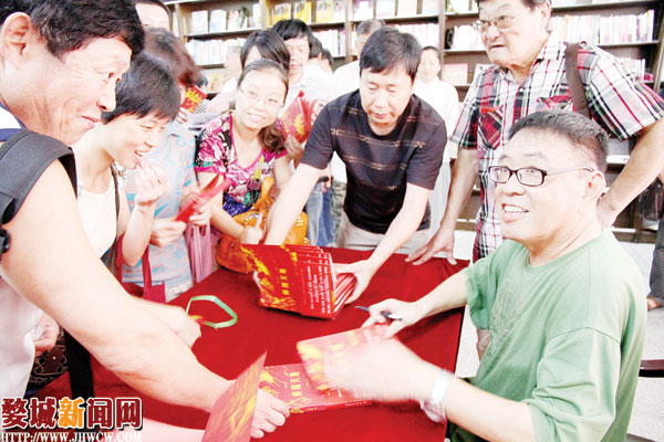当天,丁晓禾的书迷们冒着酷暑,络绎不绝地涌上购书中心二楼,他们抱着新书兴致勃勃地讨论着,对新书内容充满期待。丁晓禾一一为书迷们签名,与他们进行交流。签售会上,丁晓禾还向有关图书馆捐赠《广阔天地》。
