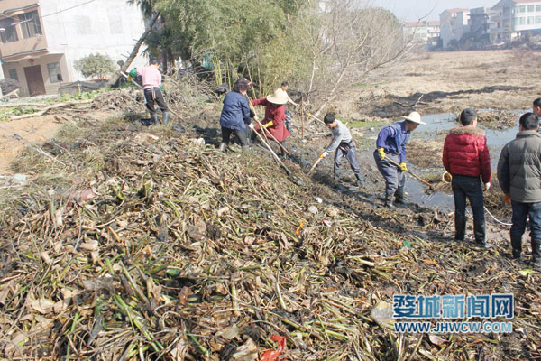 去年年底开始,长湖沿岸的村子开展了“五水共治”行动。长湖整治,首先就是要清除湖面的“外来入侵者”。陈军华说:“我们村上负责管理的2公里湖面都是水葫芦,清理起来有一定的难度。”在党员干部的带头下,村民们积极参加到这场“战役”中来,投入了大量的人力、物力,动用了大型的挖掘机,花了近一个月的时间才将河里的水葫芦清理出来,水葫芦的清理工作给接下去的河道淤泥清理开了一个好头。为了配合“五水共治”行动,上陈村拆除了面积将近4亩的长湖容器厂和一个占地近2000平方米的简易房。