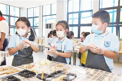 近日,在北苑小学食堂一楼,二年级两个班级的同学们在志愿者和老师的带领下制作手工月饼。当天,该校开展“感受传统文化中秋学做月饼”主题活动,家长志愿者和老师们一起教同学们做月饼,讲中秋传统习俗,让同学们在实践中感受传统文化的魅力,喜迎中秋佳节的到来。