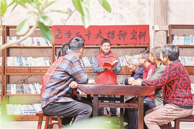 近日,婺城区莘畈乡祝村第一书记朱旭雷和宣讲队成员深入山区村社,和群众面对面,心连心,以拉家常、送关心等通俗易懂的语言,向山区党员干部及村民传达学习贯彻党的二十大精神,分享学习党的二十大精神心得体会。记者?田双双?摄