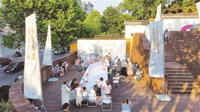 本报讯(记者 张苑 摄影 黄诗媛)6月10日下午,婺城区“文化和自然遗产日”非遗宣传展示活动在婺州古城拉开序幕。婺城区30多个非遗项目沿街摆起摊点,参与现场展演,部分项目开放现场体验,吸引来往游客共赴婺城非遗之约,共享婺城非遗之美。