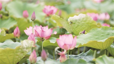 这两天,在位于婺城区长山乡卢家村的荷花塘里,朵朵娇嫩欲滴的荷花在田田荷叶间陆续绽放,不少市民游客、摄影爱好者纷纷前往观赏打卡。据了解,长山乡卢家村荷花塘种植的荷花有二十多亩,当前正值最佳观赏期,预计花期可持续至8月。除长山乡之外,婺城区蒋堂镇、琅琊镇、安地镇等地荷花都已次第开放,喜欢夏日赏荷的朋友,千万别错过这“接天莲叶无穷碧,映日荷花别样红”的美景。记者 张易 摄
