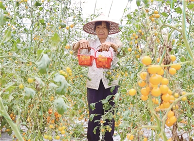 连日来,在婺城区沙畈乡停久村的小番茄大棚种植基地内,一串串或鲜红或金黄的小番茄缀满枝头,村民们正在忙着采摘、挑选、称重……一派繁忙的丰收景象。据悉,基地内种植了近10亩的小番茄,品种以高甜度、耐储存的金珠和玉女为主。基地负责人雷素丽介绍,在绿色天然等优势的加持下,小番茄深受顾客喜爱,每日源源不断地从小山村运往大市场。
