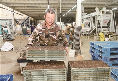 连日来,在婺城区一现代化农事服务中心内,全自动蔬菜穴盘育苗播种机正在高效运作,工人们将穴盘放上传送带后,通过播种机的自动流水线作业,一次性完成装盘、打孔、点种、覆盖基质等系列播种工作。眼下又到了蔬菜秋播秋种的好时节,各蔬菜种植基地开始翻耕菜地、播种育苗、浇水施肥等作业,以满足秋冬季节市场需求。