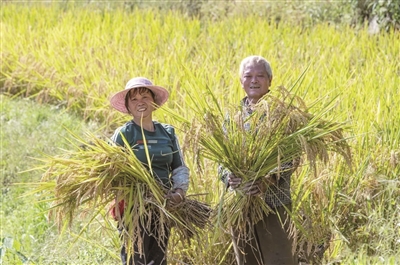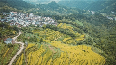 天气逐渐变冷,草木渐次黄落。秋日的塔石梯田,像一匹被岁月浸染的鎏金绸缎,层层叠叠地铺展在群山的褶皱里。那稻浪是活的,风一过,便漾起涟漪,仿佛大地在低声吟诵一首关于丰饶的十四行诗。
