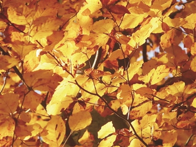 枫叶经秋风洗礼变为橘红