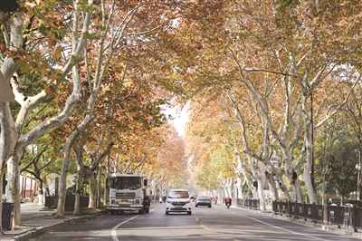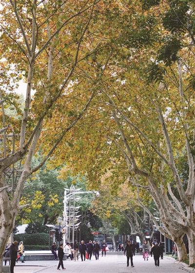 随处可见的梧桐,褪去夏日的苍翠。叶色泛起暖黄,渐渐浸透整片叶子,最终沉淀为温暖的“秋香褐”。铺在路面、缀在枝头,它不夺目,却自带故事感。