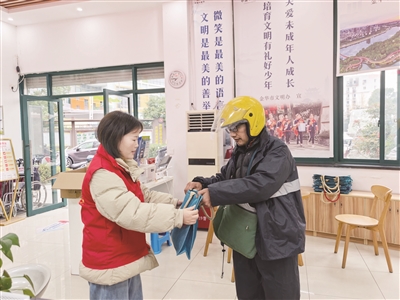 红湖路社区工会驿站将便民服务落到日常,驿站内常年提供免费充电、热水供应等基础服务,成为户外从业者随时可停靠的“暖心港湾”。