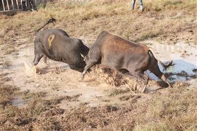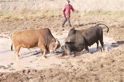 “今天是我们今年的最后一次比赛,来了20头好牛。”何建民指着正在候场的斗牛对我们说。他特地围了一条红色围巾,格外醒目。我们作为何建民的助理,一起在斗牛场边“吹牛”,领略这项传统民俗的独特魅力。