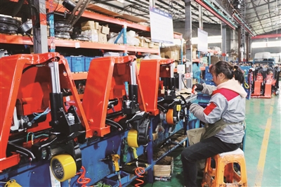 走进位于白龙桥镇的海蜜机械数字化车间,自动化流水线上,工人们正在组装一批电动搬运车。