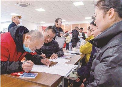 近日,婺城零工服务中心里,求职者在2025暖冬乐业专场招聘会上与招聘单位工作人员面对面沟通。当天,婺城区人力资源和社会保障局在这里举行“就业供需精准配、乐业婺城共发展”2025暖冬乐业专场招聘会。