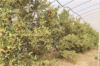 本报讯(记者 彭丽莎)冬日时节,婺城区蒋堂镇前源村的脆皮金桔迎来丰收。基地大棚内,饱满圆润的金色果实挂满枝头,像一串串小巧的灯笼点缀其间。