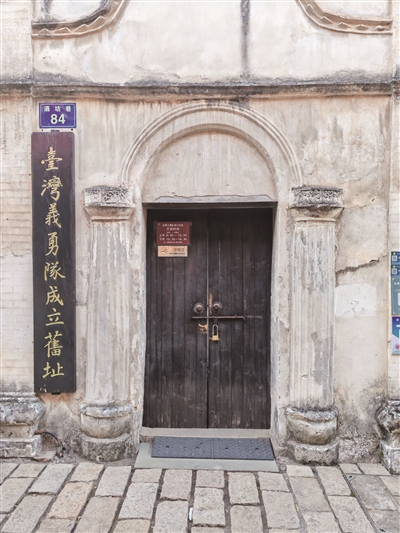 位于酒坊巷18号(现84号)的青砖小楼,在阳光下泛着温润的光泽。这座古老的建筑,是台湾义勇队成立旧址。